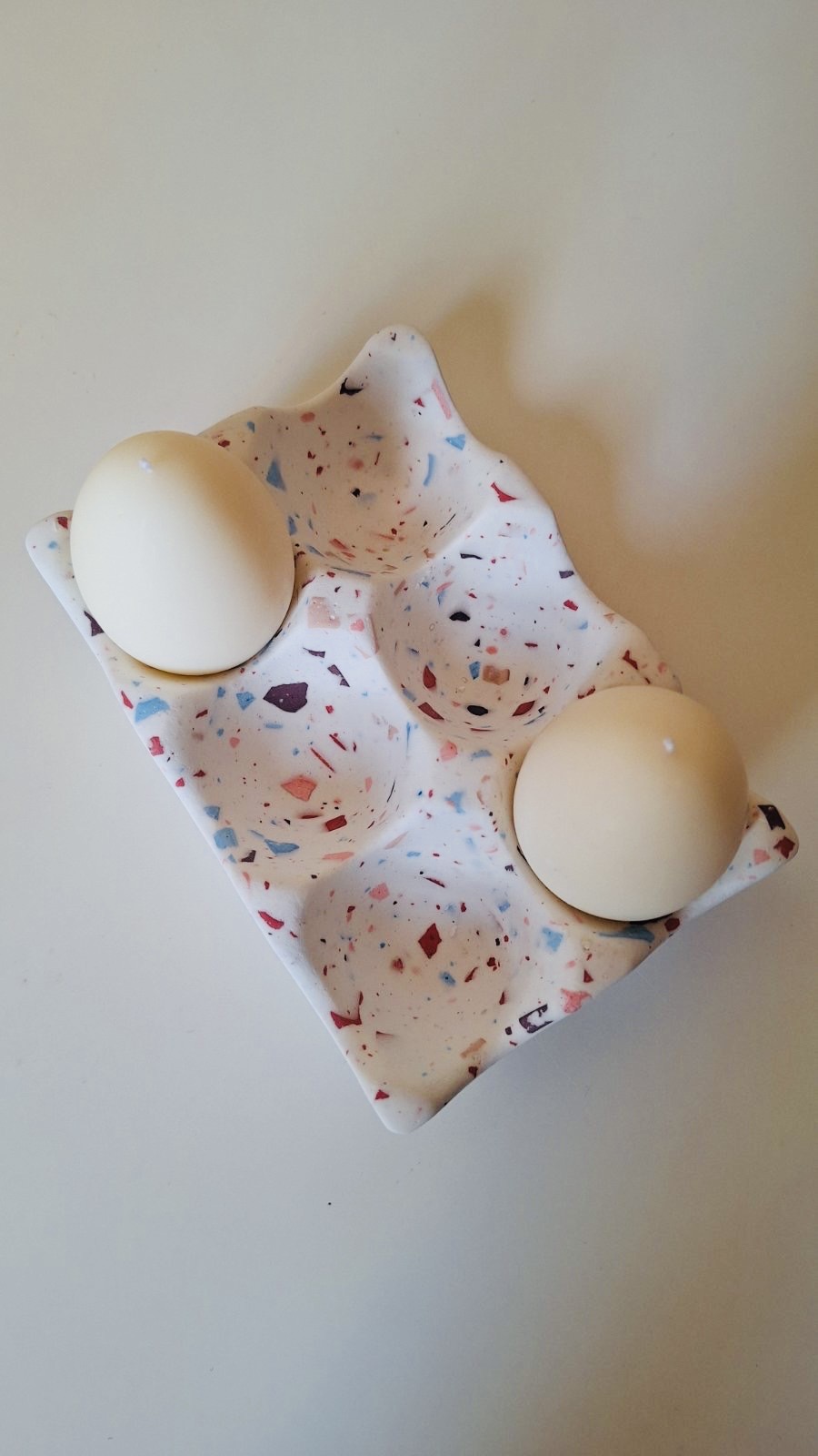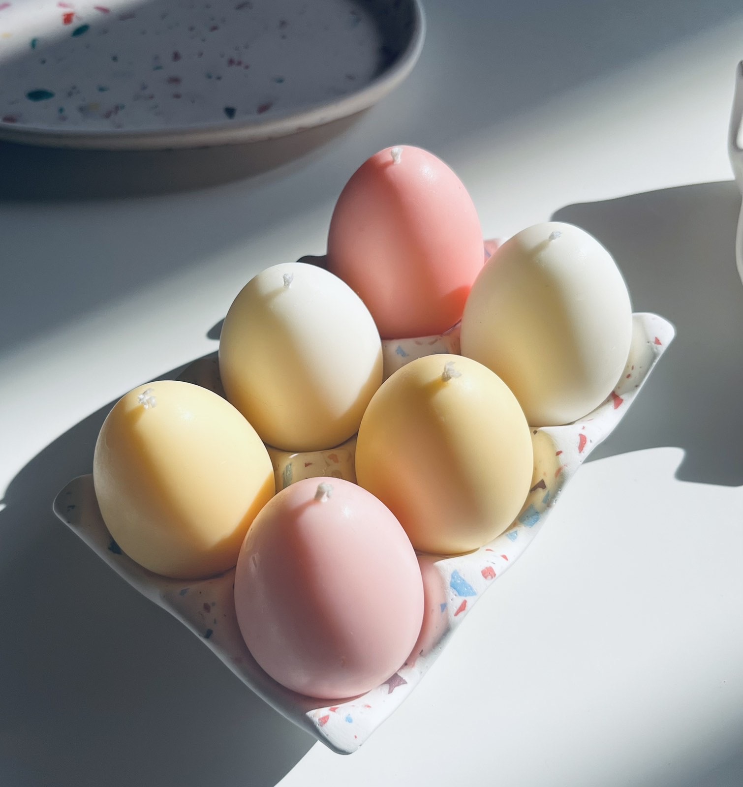 Cena seta od šest sveća Uskršnje jaje sa terrazzo posudom je 2950 dinara (sa mirisom), odnosno 2450 dinara (bez mirisa).